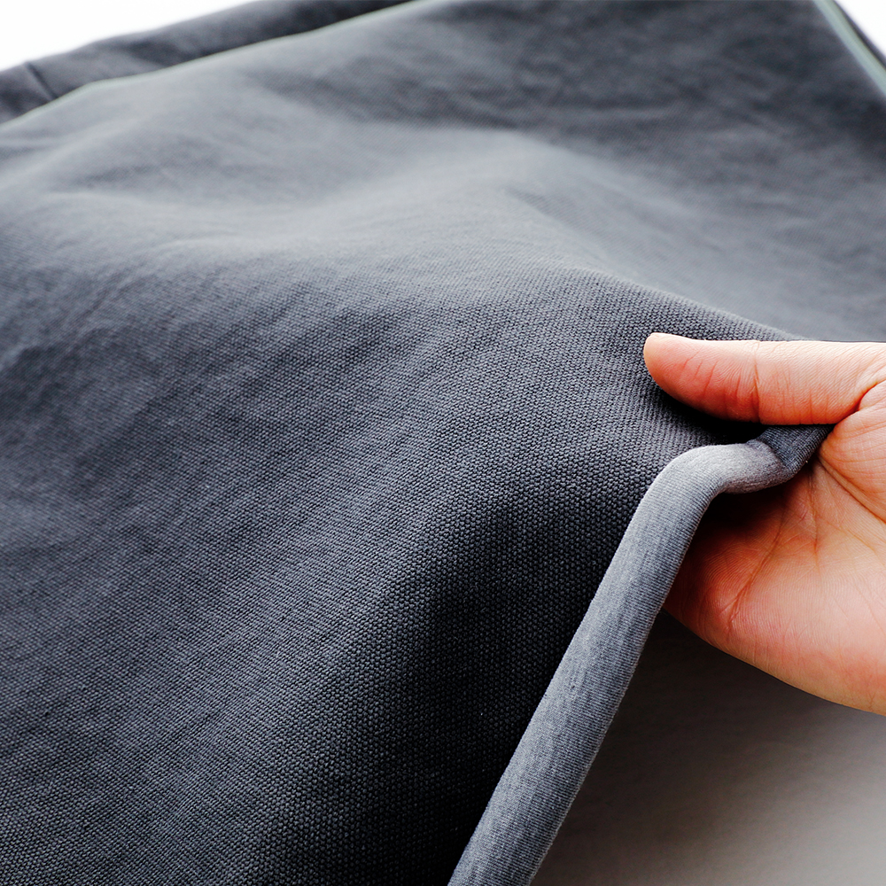 側面と底面には、枕カバーにはめずらしい「帆布生地」を使用しています。枕本体に装着していただくと、仕立てられた家具のような特別感があります。